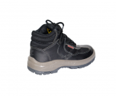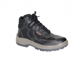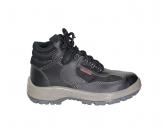 Botina cano até o tornozelo, com sola de PU bi-densidade, tendo fechamento frontal, confeccionado em microfibra lisa na cor preto , em conformidade com a ABNT NBR ISO 20344:2015 e NBR ISO 20345:2015.
