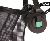 Conjunto integrado de proteção facial e auditiva.