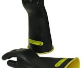 Luva de borracha isolante, oferece resistência contra choques elétricos, lesões sérias e até fatais.