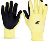 Voltar para produtosLuva de segurança tricotada em algodão, poliéster e elastômero com revestimento antiderrapante vulcanizado, em formato de diamante, de látex natural na palma, face palmar dos dedos e pontas dos dedos (unheira), com reforço de borracha natural entre os dedos polegar e indicador (região da pinça), punho tricotado em algodão, com acabamento em overloque.