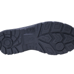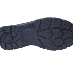 Solado em poliuretano injetado diretamente ao cabedal, bidensidade, com sistema de absorção de impactos e desenho plantar rebaixado para melhor mobilidade ao caminhar.