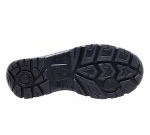 Solado em poliuretano injetado diretamente ao cabedal, bidensidade, com sistema de absorção de impactos e desenho plantar rebaixado para melhor mobilidade ao caminhar.