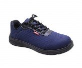 Tênis de amarrar Kadesh, linha Safe Tech, 100% têxtil, azul, com solado em poliuretano (PU). Calçado altamente leve, flexível e transpirável, com o conforto e a proteção necessária para enfrentar o dia-a-dia em diversos ambientes de trabalho. Atende as normas da ABNT NBR ISO.