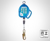Possui um olhal em aço giratório na parte superior para conexão ao ponto de ancoragem. Na extremidade do cabo de aço é conectado um conector em aço forjado tipo gancho de 20 mm de abertura com dupla trava e indicador de impacto